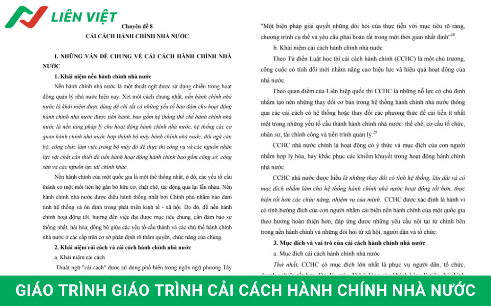 Việc nghiên cứu về quản lý công đóng vai trò then chốt đối với sinh viên và cán bộ ngành hành chính. Cuốn giáo trình Cải cách hành chính nhà nước là tài liệu quan trọng giúp người đọc nắm vững lý thuyết và thực tiễn đổi mới. Bài viết sau đây của Liên Việt sẽ cung cấp thông tin chi tiết và link tải PDF chuẩn nhất.